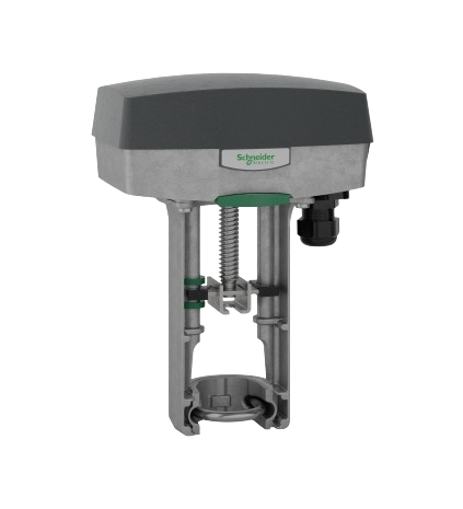SpaceLogic är en serie som består av bland annat ställdon för styrning av tvåvägs- och trevägskägelventiler. Enkel installation och idrifttagning. Ställdonets arbetsområde och ändlägesbrytare anpassas automatiskt till ventilens slaglängd. Den kan konfigureras för olika flödesegenskaper, linjär eller logaritmisk styrning. Matningsspänning: 24 V AC +25%/-35%. Valbara spänningar för analog styringång: 0…10 V, 2…10 V, 0…5 V, 5…10 V, 2..6 V, 6..10 V. Ställkraft: 400 N. Kapslingsklass: IP54. När en ändlägesjustering genomförs stänger ställdonet ventilen och öppnar den sedan helt innan den svarar på styrsignalen.
